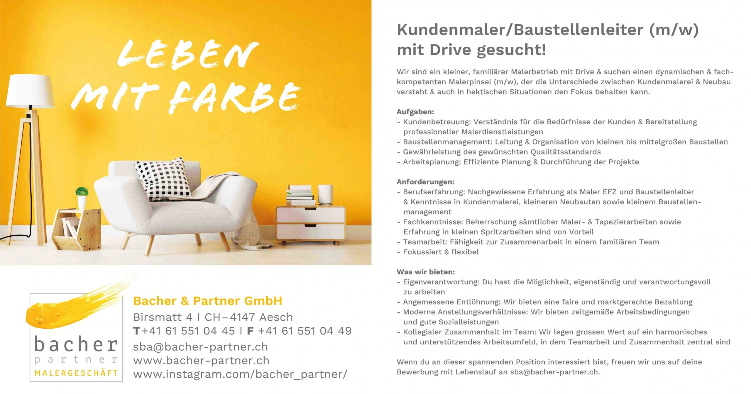 … die Ausbildung bei Stefan Bacher absolviert und jeden seiner Stellenwechsel mitgemacht. Diverse Weiterbildungen und seine kundenorientierte und speditive Arbeitsweise haben ihn über die Jahre hinweg vom treuen und wertvollen Mitarbeiter zur rechten Hand des Chefs wachsen lassen.